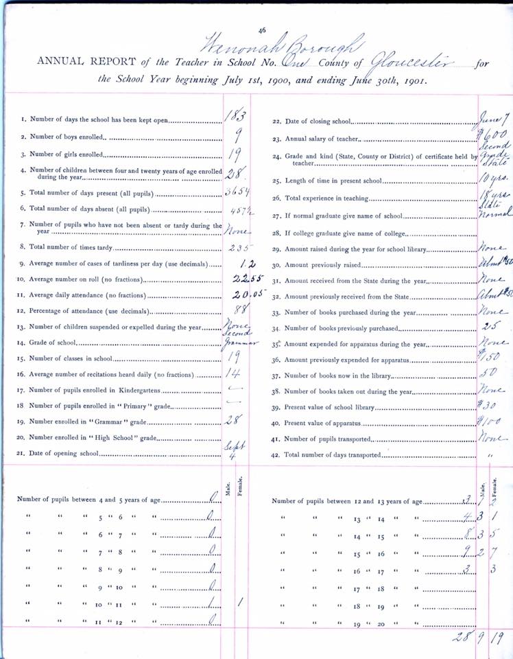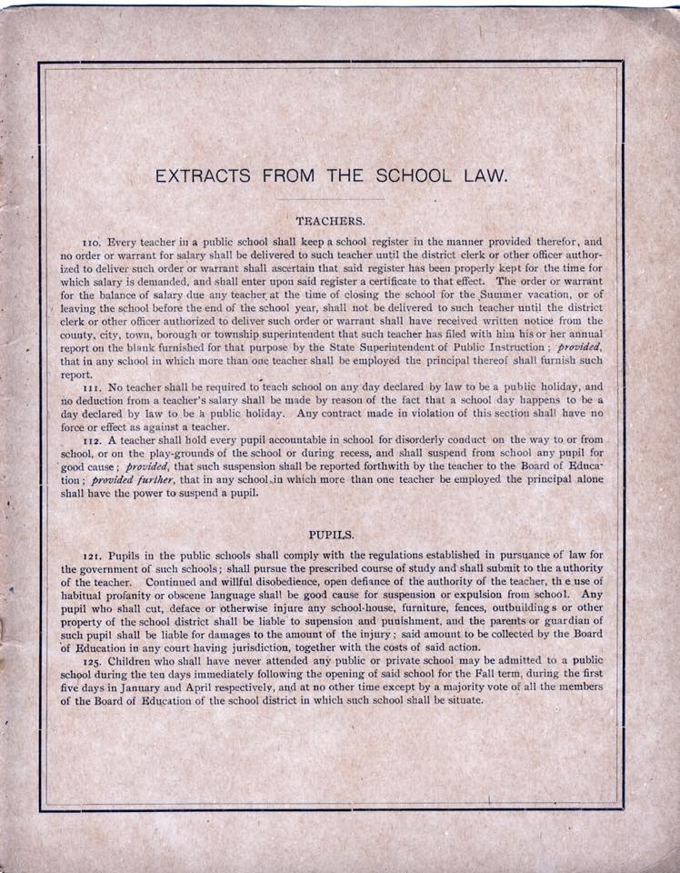 On August 30, 2017, Vicki Lou McCall wrote, "With the new school year about to start, let me share with you this recent find from a few years ago...it is signed & filed by the School District's clerk, Edward L. Farr (is there anything this man didn't do?- I.e. developed linoleum as we know it from his father's oil cloth company, started and ran Cooper Hospital, donated land to The Wenonah Presbyterian Church, President of The Camden Bank & Trust Bank, started an orphanage for destitute children, etc....).