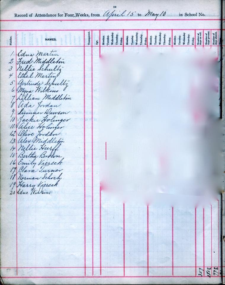 1900 - 1901 Wenonah School Register