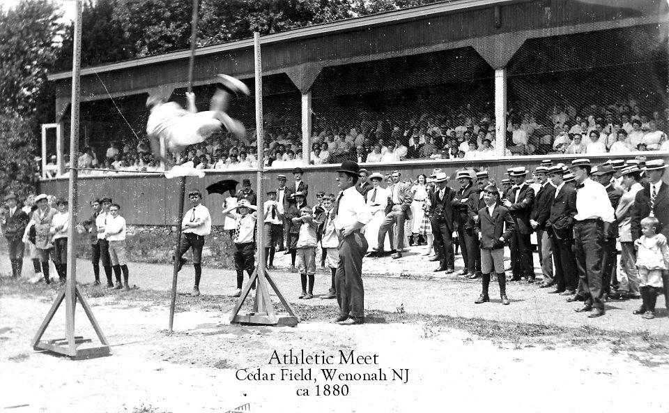 Looks like they managed to catch a pole vaulter in action. Apparently there was no thought to providing sawdust or sand to soften his return to the ground.